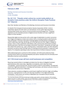 CCIA Opposes Nebraska Bill That Would Expand Deceptive Trade Practices Law and Harm Small Businesses