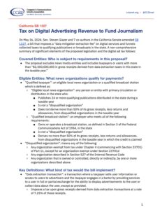 California SB 1327: Tax on Digital Advertising Revenue to Fund Journalism