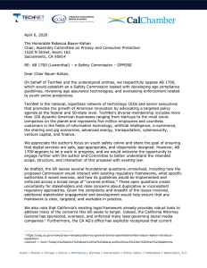 TechNet Led Coalition Letter on CA AB 1700