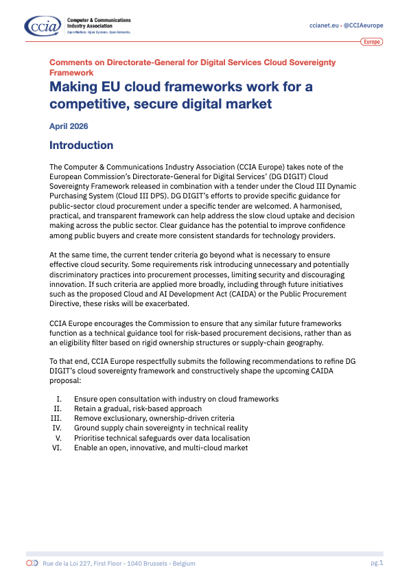 CCIA supports efforts to facilitate and streamline information sharing on cyber threats between the private sector and the federal government. Cyber crime laws should be updated to address today’s threats, but must not inadvertently criminalize trivial user behavior. Furthermore, increased research and development, education, and workforce training will produce new tools to address cyber threats and skilled professionals trained to use them. Finally, policymakers should encourage the deployment of strong, ubiquitous encryption, which is increasingly vital for national security, a vibrant and competitive digital economy, and the physical and online safety of individuals.