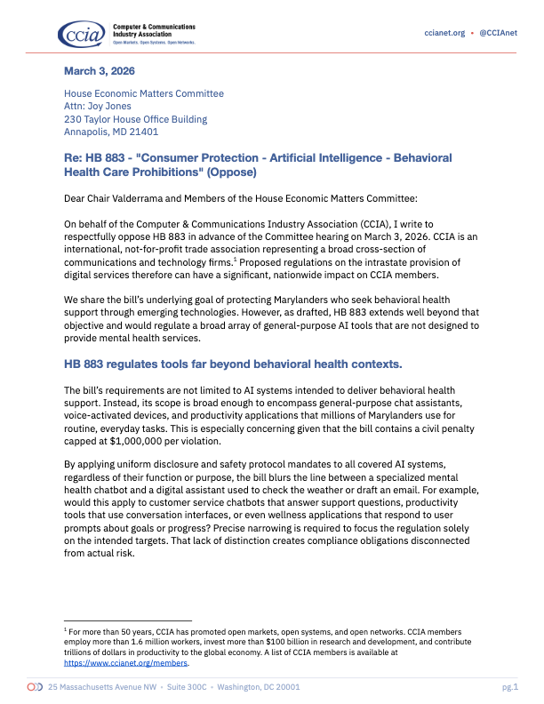 As new technologies including artificial intelligence, machine learning, and facial recognition flourish in the digital marketplace, policymakers are increasingly interested in regulating these new products and services. However, these technologies are already bringing value into consumers’ lives, and American companies must continue to have the flexibility to innovate if the United States is going to continue to lead the world in technology.