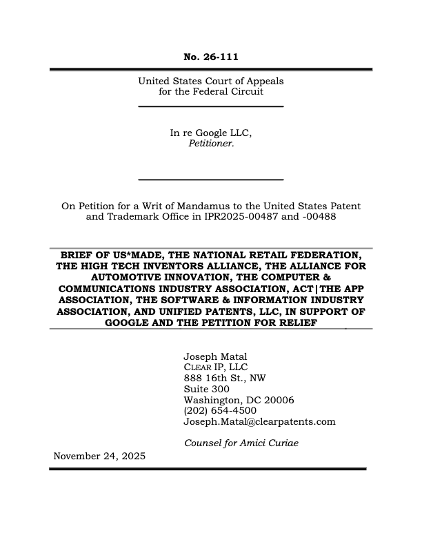 CCIA writes about current patent issues at its blog Patent Progress.