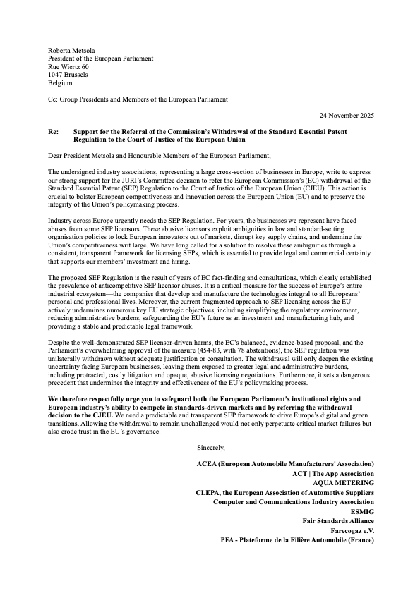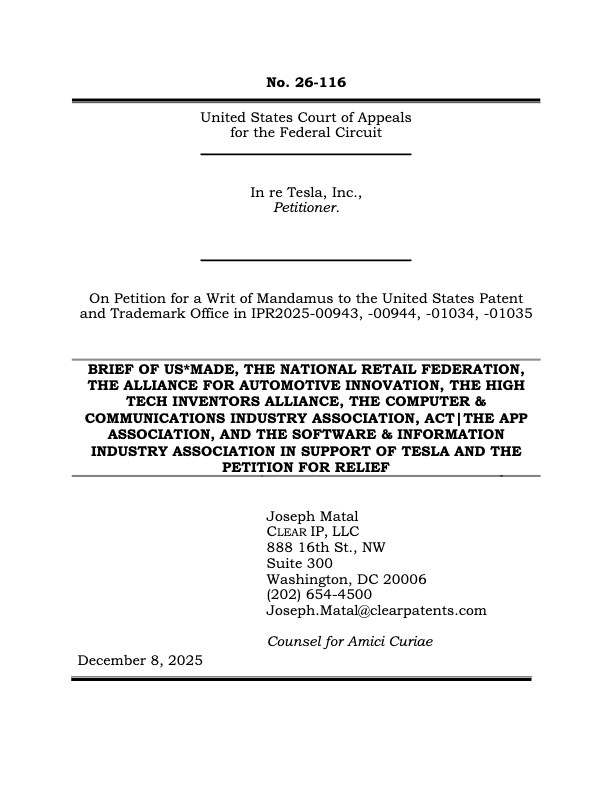 - Patent reform legislation, including measures to limit abusive litigation by PAEs and protect end users;