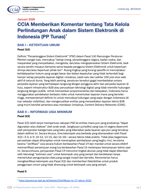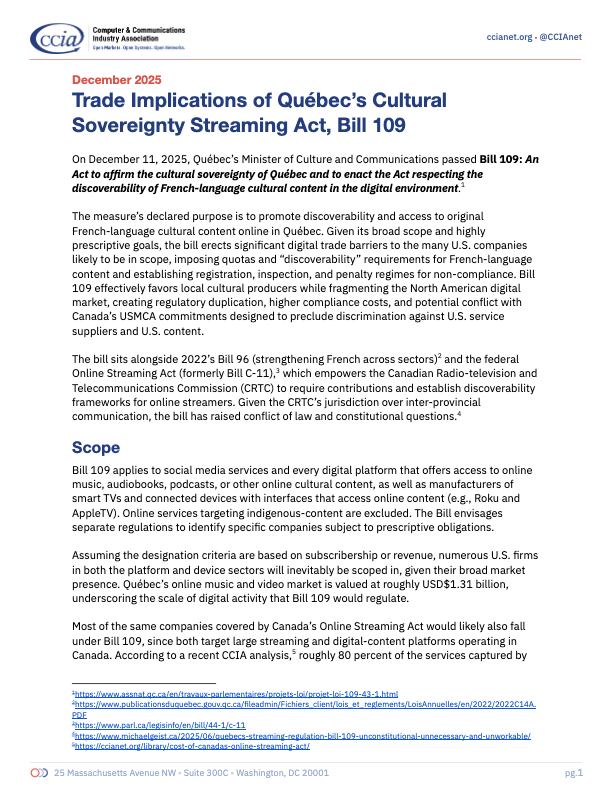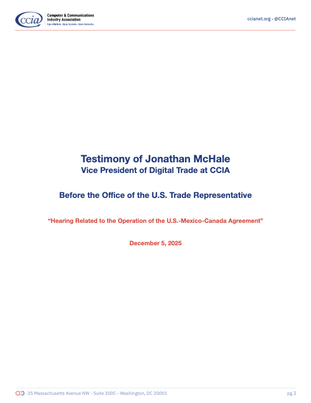 CCIA engages regularly with trade officials in the United States and around the world and participates in regulatory reviews and public comment processes globally.