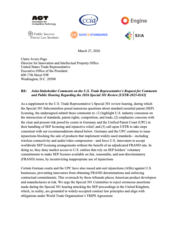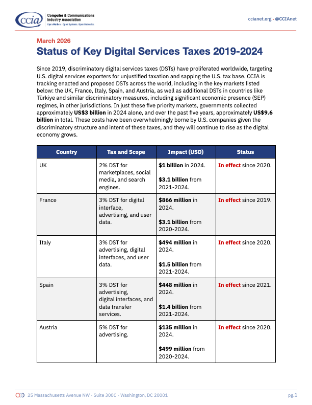 CCIA engages regularly with trade officials in the United States and around the world and participates in regulatory reviews and public comment processes globally.