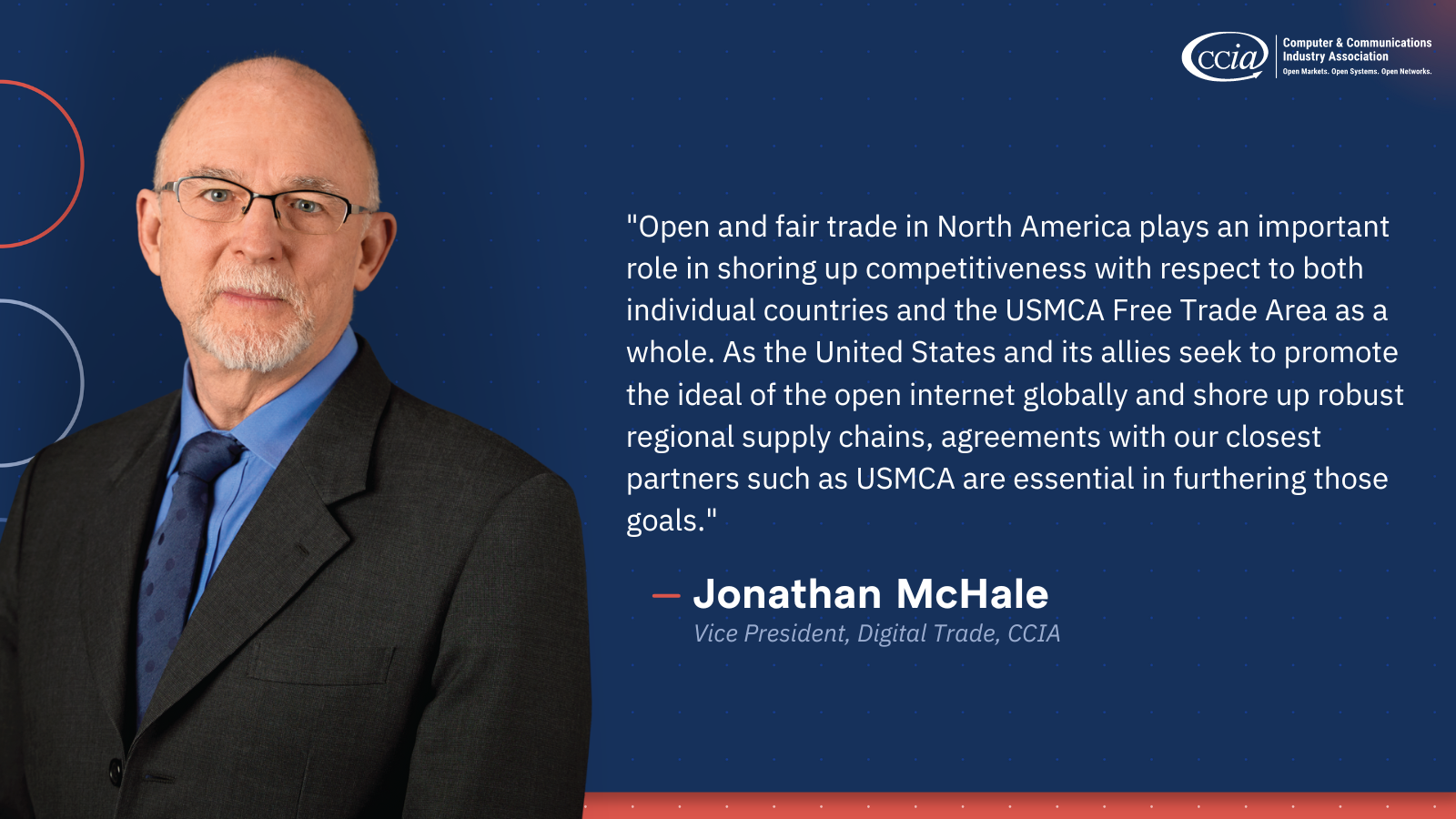 “Open and fair trade in North America plays an important role in shoring up competitiveness with respect to both individual countries and the USMCA Free Trade Area as a whole. As the United States and its allies seek to promote the ideal of the open internet globally and shore up robust regional supply chains, agreements with our closest partners such as USMCA are essential in furthering those goals. The North American Competitiveness Committee should consider the trade barriers in Canada and Mexico that restrict digital exporters’ from receiving the full benefits that are guaranteed to them by USMCA, and impair the value of the trade bloc as a whole.”