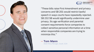 The Computer & Communications Industry Association supports enhanced privacy protections for younger users online, but any commercially available age verification method that may be used by a covered platform carries serious privacy and security concerns for users while also infringing upon their First Amendment protections to speak anonymously.