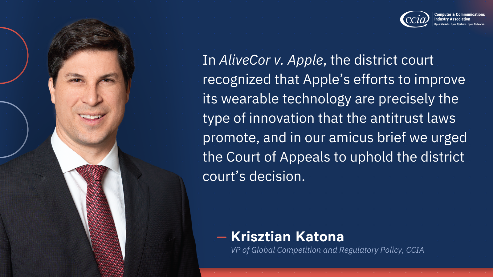 Washington – The Computer & Communications Industry Association joined an amicus brief led by Chamber of Progress that asks the U.S. Court of Appeals for the Ninth Circuit to uphold a district court decision that granted Apple a motion to dismiss in AliveCor v. Apple.