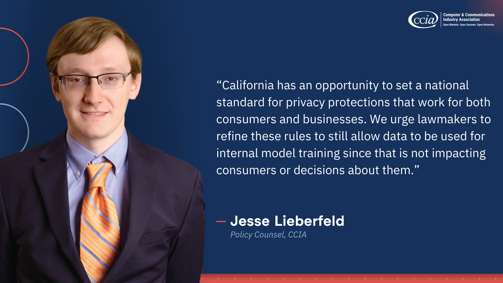 “California has an opportunity to set a national standard for privacy protections that work for both consumers and businesses. We urge lawmakers to refine these rules to still allow data to be used for internal model training since that is not impacting consumers or decisions about them.