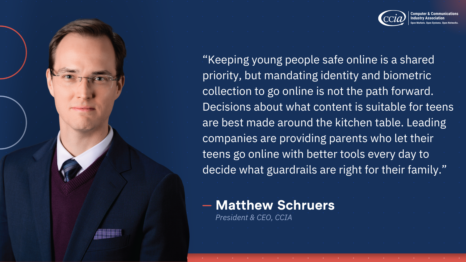 “Keeping young people safe online is a shared priority, but mandating identity and biometric collection to go online is not the path forward. Decisions about what content is suitable for teens are best made around the kitchen table. Leading companies provide parents who let their teens go online with better tools every day to decide what guardrails are right for their family.”