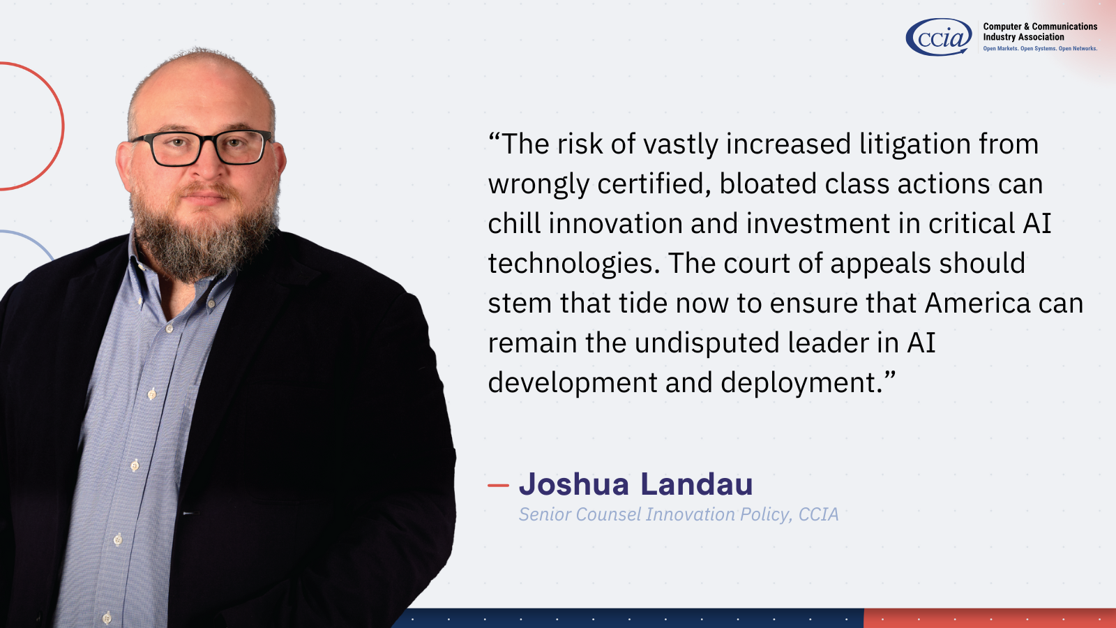 Washington – The Computer & Communications Industry Association has joined TechNet, Consumer Technology Association and other pro-innovation organizations in an amicus brief to the U.S. Court of Appeals for the Ninth Circuit in Bartz v. Anthropic. The brief argues that the district court’s error-ridden class certification order would lead to further abuse of class action litigation and threaten the growth of the entire artificial intelligence industry.