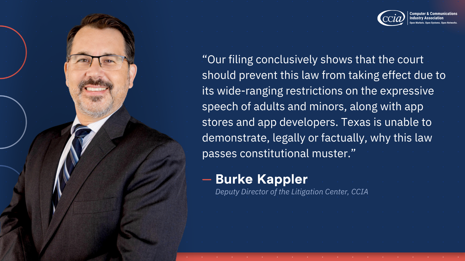 “Our filing conclusively shows that the court should prevent this law from taking effect due to its wide-ranging restrictions on the expressive speech of adults and minors, along with app stores and app developers. Texas is unable to demonstrate, legally or factually, why this law passes constitutional muster.”