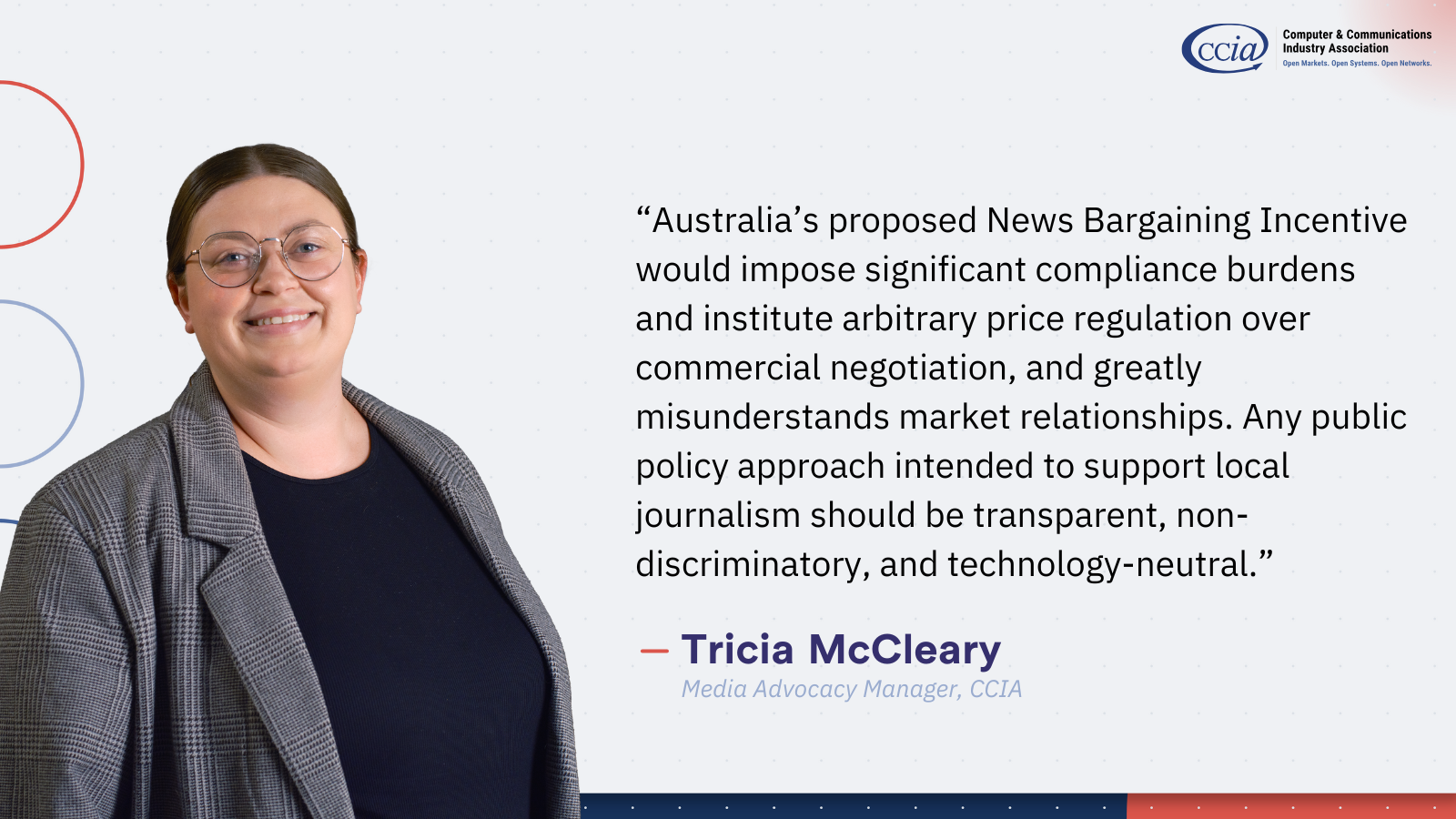 “Australia’s proposed News Bargaining Incentive would impose significant compliance burdens and institute arbitrary price regulation over commercial negotiation, and greatly misunderstands market relationships. Any public policy approach intended to support local journalism should be transparent, non-discriminatory, and technology-neutral.”