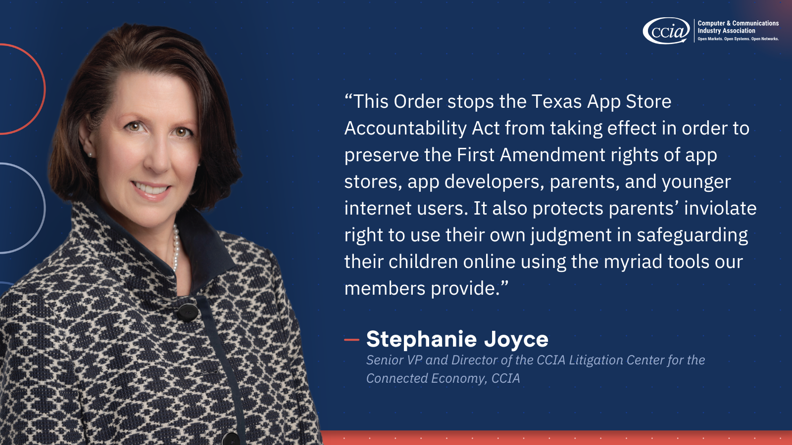 “This Order stops the Texas App Store Accountability Act from taking effect in order to preserve the First Amendment rights of app stores, app developers, parents, and younger internet users. It also protects parents’ inviolate right to use their own judgment in safeguarding their children online using the myriad tools our members provide.”