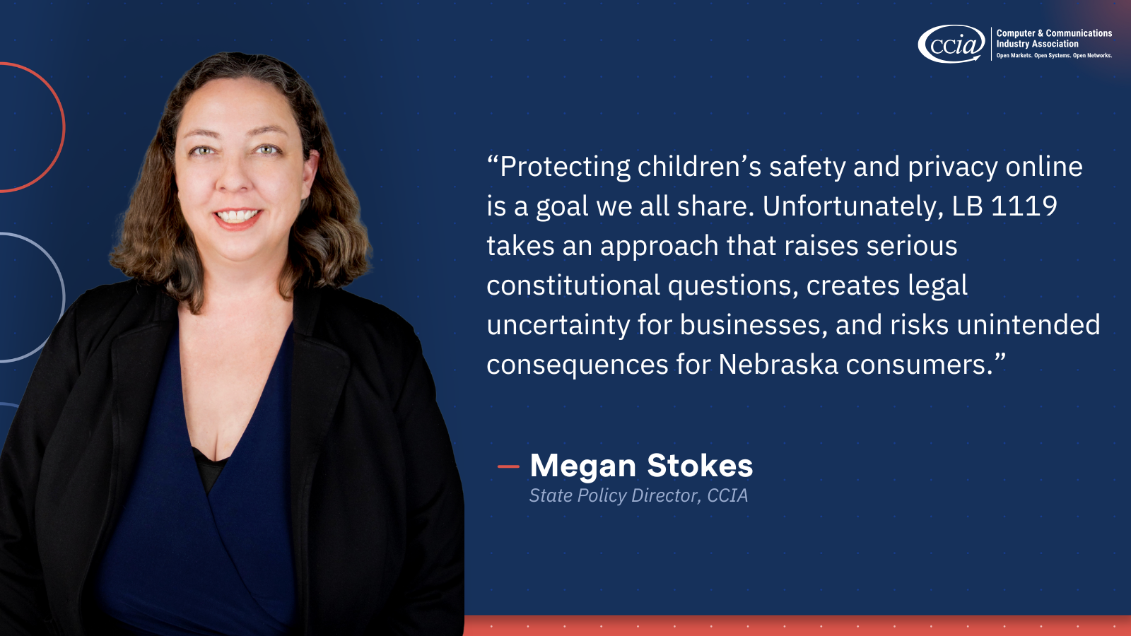 “Protecting children’s safety and privacy online is a goal we all share. Unfortunately, LB 1119 takes an approach that raises serious constitutional questions, creates legal uncertainty for businesses, and risks unintended consequences for Nebraska consumers. CCIA stands ready to help lawmakers focus on solutions that are effective, clearly defined, and consistent with longstanding constitutional principles.”