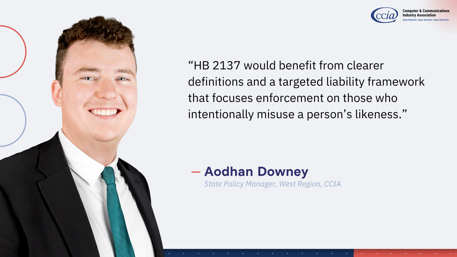 “Policymakers are right to be concerned about the potential misuse of AI-generated content. At the same time, legislation should be tailored to hold bad actors accountable without undermining lawful speech or placing unreasonable burdens on technology services. HB 2137 would benefit from clearer definitions and a targeted liability framework that focuses enforcement on those who intentionally misuse a person’s likeness. We look forward to continuing to work with lawmakers to refine the bill and support balanced, workable protections.”