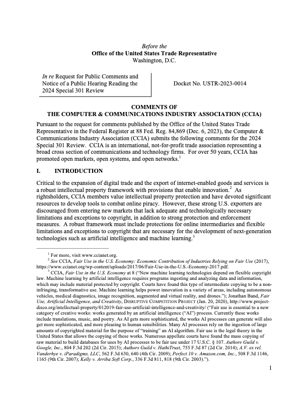 2023 CCIA Responses to Special 301 Questions