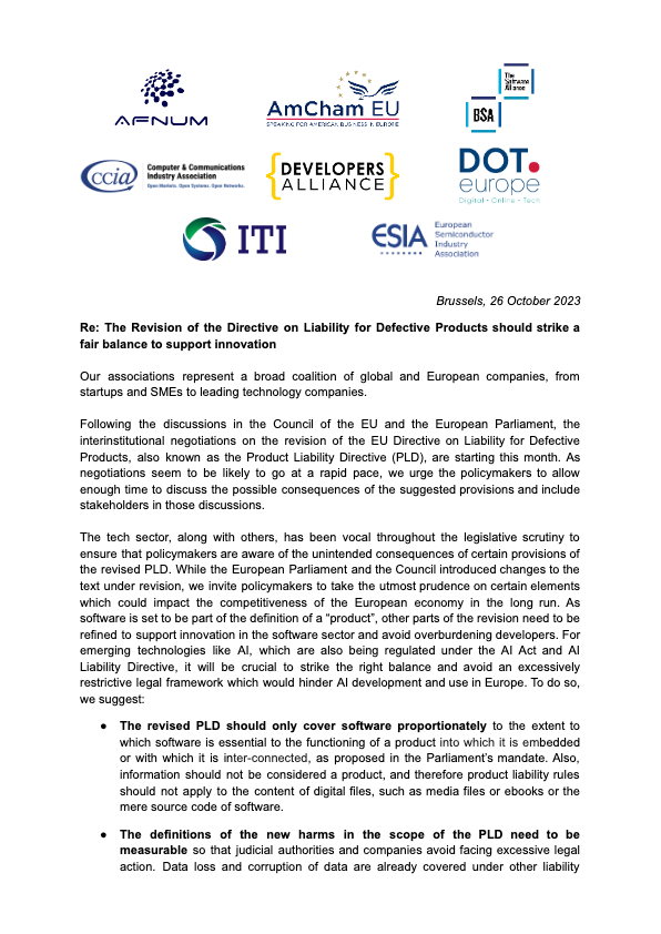 CCIA Europe position paper PLD revision