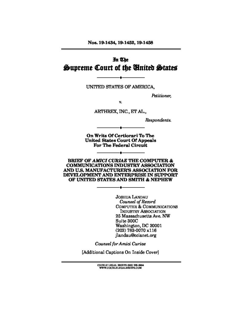 CCIA Amicus Brief in Support of US and Smith and Nephew 19-1434 19-1452 19-1458