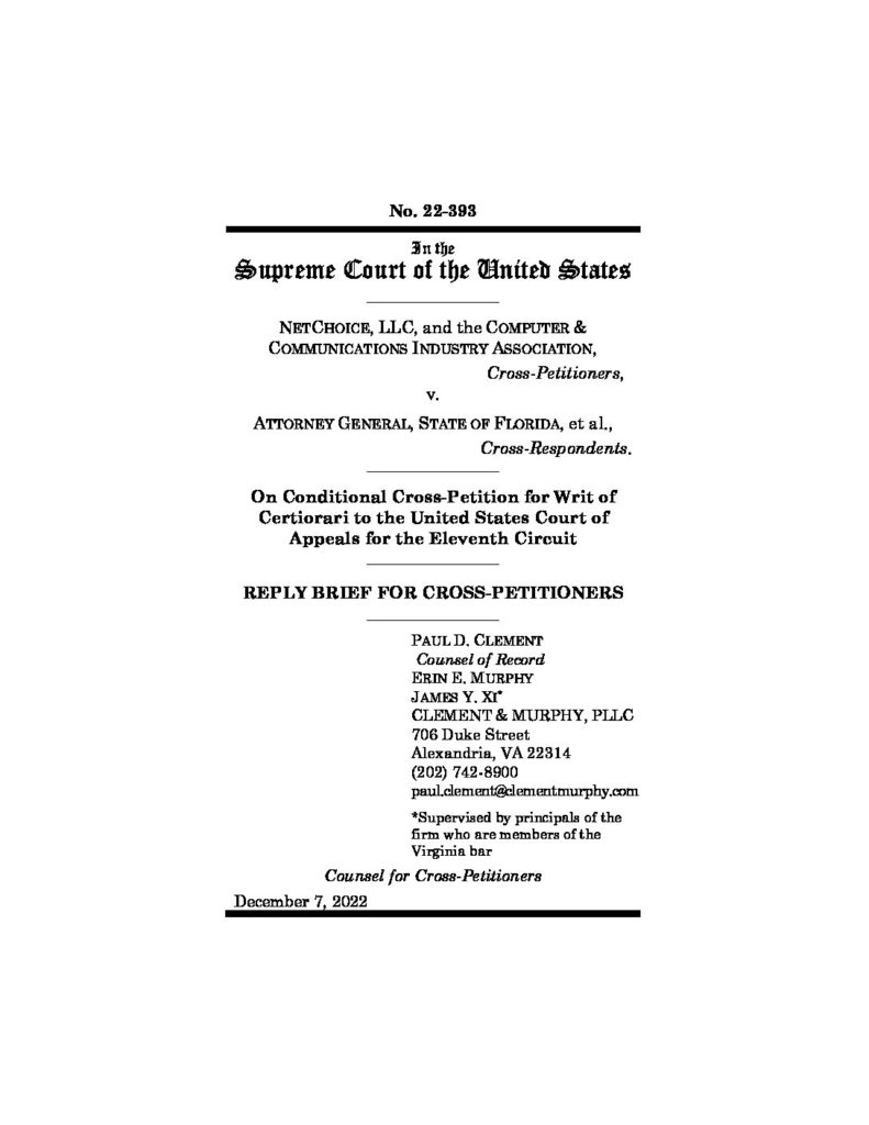 Moody v. Florida CCIA NetChoice Reply in Supp of Certiorari