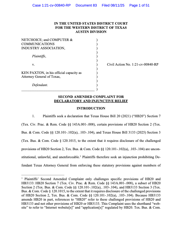 CCIA and SEAT Opposition to Texas Motion to Stay Injunction WD Tex. ASAA