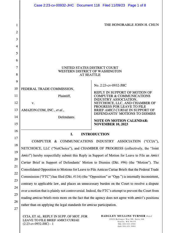 CCIA NetChoice Chamber of Progress Amicus Brief FTC v. Amazon WD Wash.