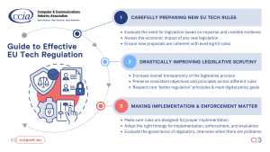 The Computer & Communications Industry Association (CCIA Europe) is excited to announce its new infographic summarising the three key steps towards more impactful, innovation-friendly tech policy ...