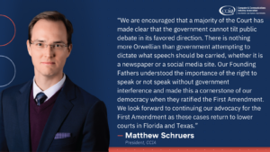 Washington – The Supreme Court has ruled 6-3 that the First Amendment prohibits Florida and Texas from dictating what social media applications and websites may display. In CCIA’s joint challeng...