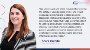 Washington – The Computer & Communications Industry Association has sent a letter urging Texas Governor Greg Abbott (R) to veto legislation that would impair current efforts to protect children ...